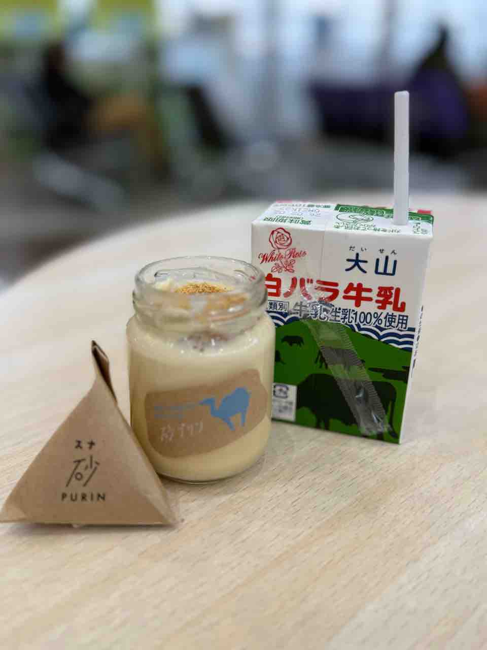 米子空港✈️で食べた、牛骨ラーメンと鳥取の名産?砂プリンと白バラ牛乳🐮、温泉にあった白バラプレミアムミルク🍼のアイスクリームが今まで食べたバニラアイス界隈で1番美味しかった‼️